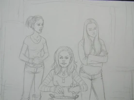 Phoebe tells Paige and Piper that they need to get Quinn back before both Piper and herself also become black and white, saying that she's already been that before, referring to the experience with Billy and the Demon of Illusion. But Paige isn't worried about what color she is, rather about getting the evidence back on the Mercers. Paige explains that Scrying won't work since he's not real and that she can't send him back without getting the laptop back. She wants to know why Quinn left leaving Piper to explain she has a clue to that issue: Quinn is on the phone, offering a trade: the computer for being made real permanently. Paige says to meet in the Manor in an hour. They have time to put her plan in motion.